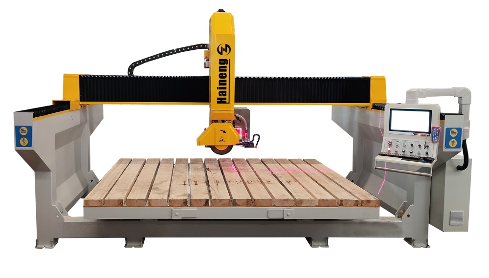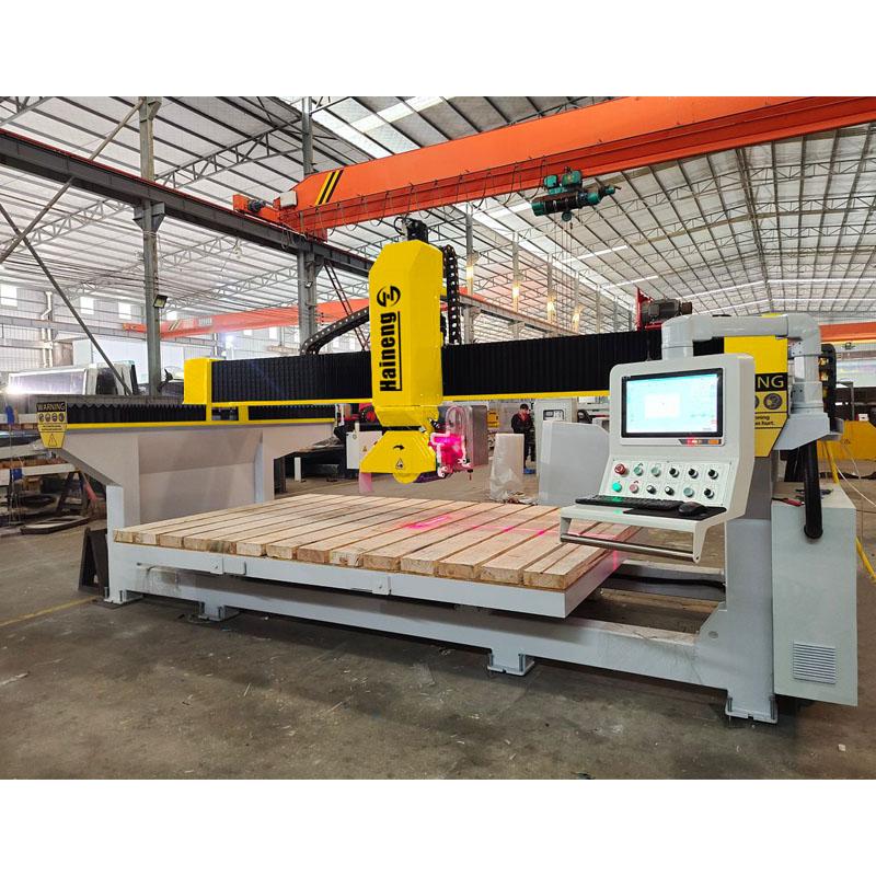 آلة قطع الأحجار بالمنشار الجسري CNC رباعية المحاور من هاينينغ هي آلة لمعالجة الأحجار تجمع بين القطع عالي الدقة والتشغيل الذكي. آلة قطع أحجار الجسور تتميز هذه الآلة بوصلة رباعية المحاور مع إمكانيات طحن إضافية، مما يوفر سهولة التركيب والتشغيل. تُستخدم بشكل أساسي لمعالجة المواد الحجرية مثل الرخام وحجر الكوارتز وألواح الحجر والجرانيت في المشاريع الزخرفية، وتُعد منشار حواف الحجر أنسب معدات المعالجة العميقة لمصانع القطع ذات الأشكال المخصصة.