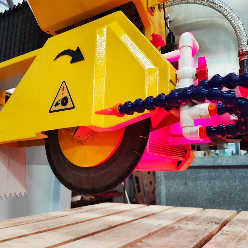 مصانع معالجة الأحجار: تُستخدم لتقطيع الألواح الكبيرة إلى ألواح ذات أحجام قياسية، أو لتصنيع منتجات مخصصة مثل أسطح المطابخ والحمامات، ودرجات السلالم، وغيرها من العناصر ذات الأشكال الخاصة.