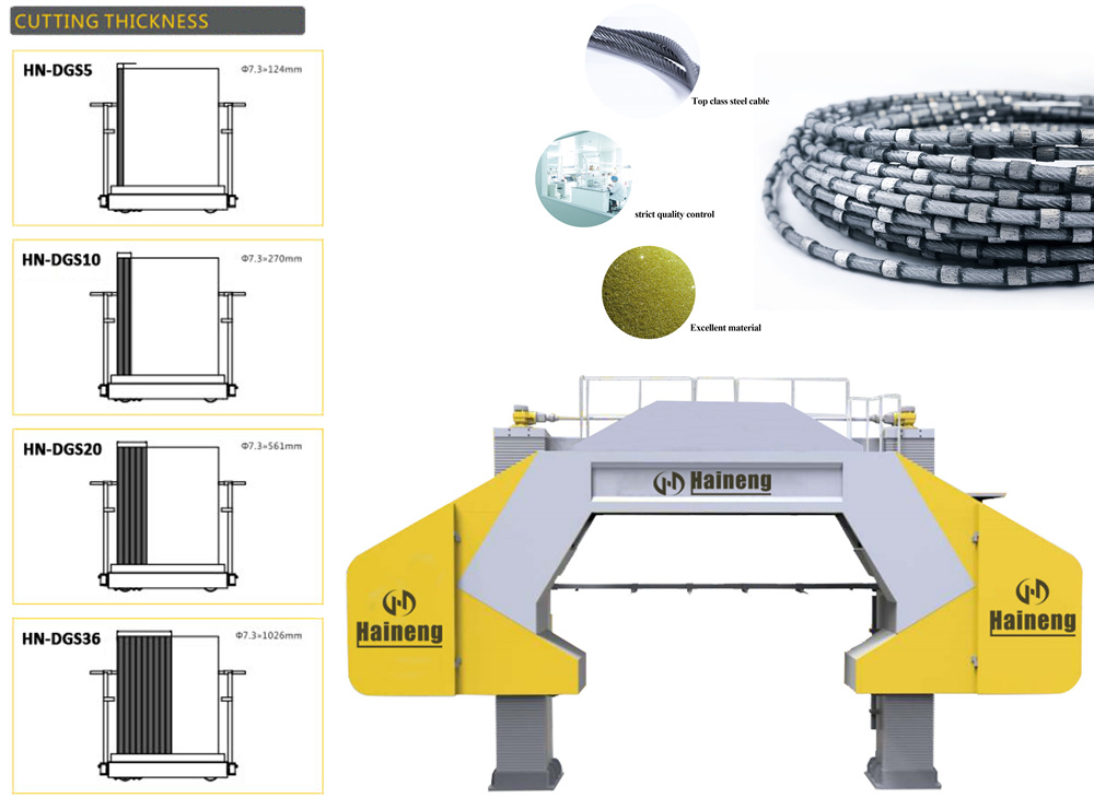 يوفر خيارات مواصفات متعددة، ويمكنه قطع ألواح الجرانيت بسُمك يتراوح بين 20 و30 ملم في آنٍ واحد. يوفر كفاءة قطع عالية للغاية مع ضمان دقة ونعومة سطح الألواح المقطوعة. كما يُحسّن ضجيج التشغيل المنخفض بيئة العمل بشكل ملحوظ.