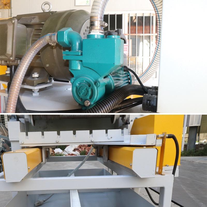 ٥- تتضمن الآلة خزان مياه معاد تدويرها ونظام ترشيح لتسهيل الصيانة. لا يقتصر دور هذا النظام على تبريد الشفرات لمنع ارتفاع درجة حرارة الحجر وتشققه فحسب، بل يساهم أيضًا في الحد من الغبار بشكل فعال، مما يحسن بيئة العمل ويلبي المعايير البيئية.